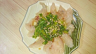 セイゴの刺身と大根の葉のごま醬油和え レシピ 作り方 By Happy Days 楽天レシピ